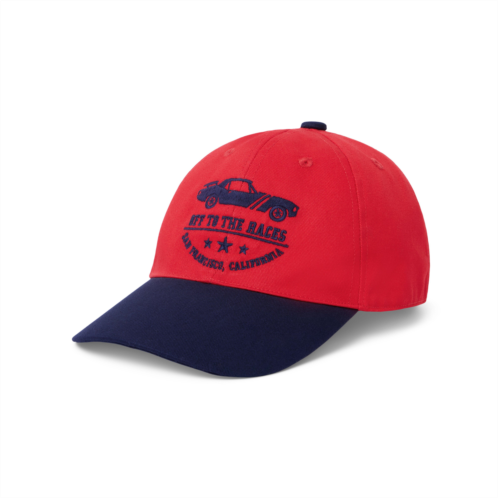 - Off to the races with our embroidered cap. Featuring a race car design, it's ready for every adventure.