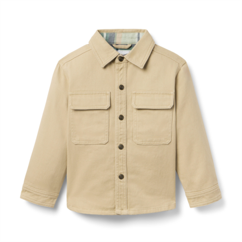 The layer for every cool weather adventure. Our shirt jacket in soft brushed twill features a cozy plaid lining and chest pockets.