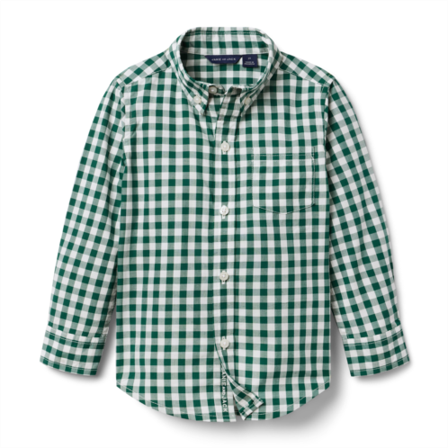 Their look is squared away with our gingham shirt in pure cotton poplin. Featuring tailored details, like collar point buttons and a chest pocket.