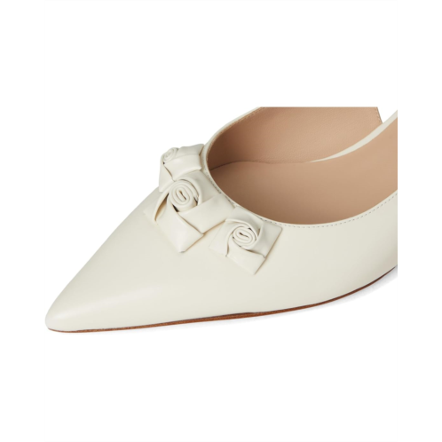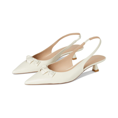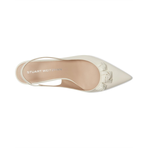 The Stuart Weitzman STRT ROSIE SLNGBK 35 is a gored slingback pump, designed to add elegance and style to any outfit. This pull-on footwear features a delicate kitten heel and a classic pointed toe shape. The rose details add a touch of aesthetic charm.