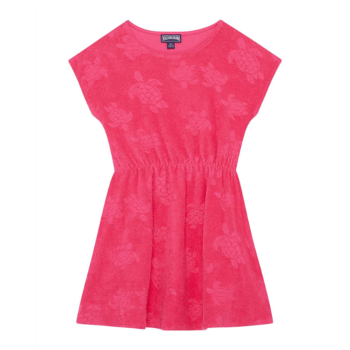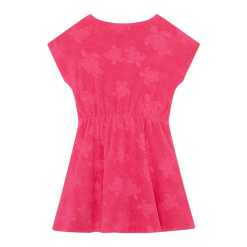 - A short-sleeved terry fabric dress with a comfortable elasticated waistband and the iconic Vilebrequin turtle embroidered on the chest to offer eye-catching style. This dress offers a round neckline with cap sleeves in a pull-on style.