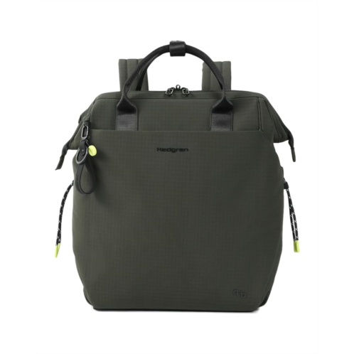 - Design that works as hard as you do, Hedgren Orizuru. Crafted from durable polyester with a smooth polyester lining, this medium-sized backpack is built for the modern commuter who refuses to compromise on style or convenience. Inspired by the art of origami, the Orizuru features a striking 180º wide-angle top opening, offering instant visibility and effortless access to your essentials, from laptops to travel gear. Stay organized with one main compartment and six smartly designed pockets, while your laptop rests safely in a padded sleeve. The adjustable strap ensures personalized comfort, and the smart luggage sleeve lets you glide seamlessly over your suitcase handle. An expandable string system adapts to your daily needs.