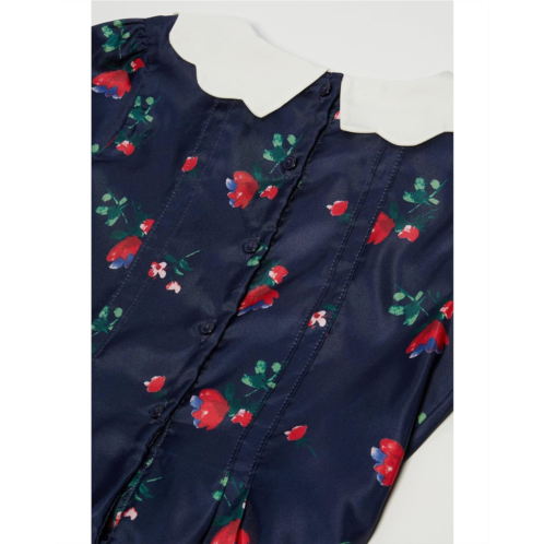 - Get a pleasant and delightful look for your little girl by choosing the Janie and Jack Navy Floral Dress. The dress has a high neckline and short ruffled sleeves. It is fully lined and has a buttoned closure at the back.