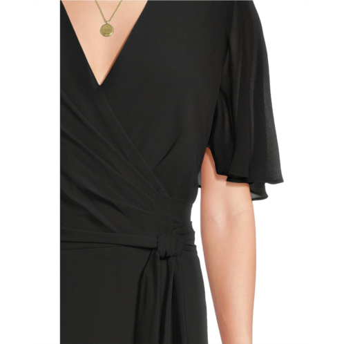- Look classy and feminine wearing the LAUREN Ralph Lauren Belted Georgette Dress. With whimsical flutter sleeves, this V-neckline dress offers a fit-and-flare silhouette with a concealed center-back zipper and hook-and-eye closure, pleating gathered at the left waist, with a self tie belt and threaded belt loops.