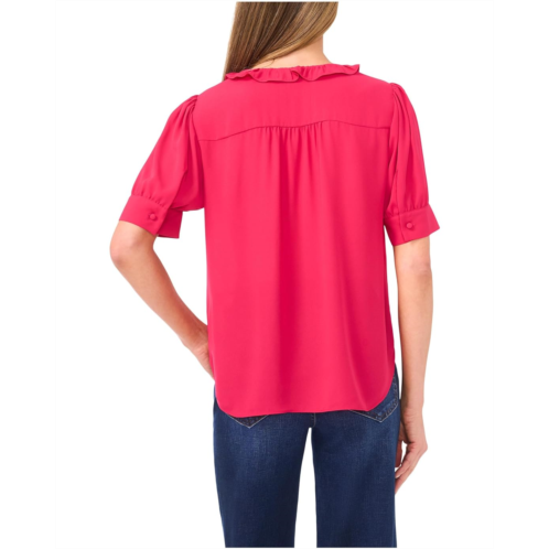 [US] Womens CeCe Short Puff Sleeve Button Down Ruffled Top