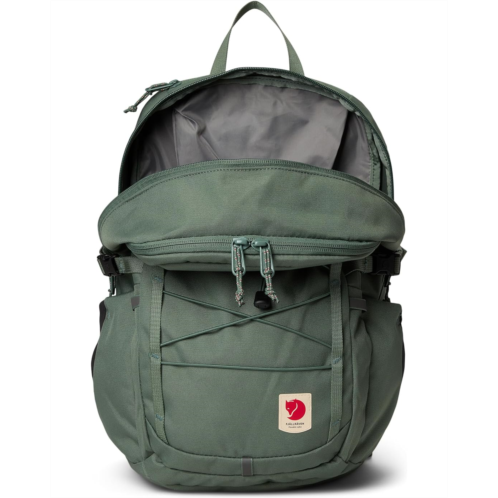 - Keep your essentials organized in the Fjallraven bag. The bag has a zippered main compartment with a padded laptop sleeve and a zippered front compartment with an interior zippered pocket and mesh organizer pockets. The bag is hydration-system compatible with comfortable padded shoulder straps and a back panel with air mesh. The bag has seven pockets including inner mesh pockets, inside compartment, open side pockets, zippered inside pockets, and zippered outside pockets.