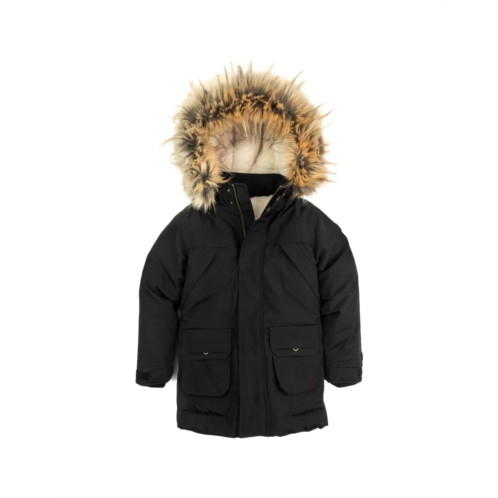 - Brave the chill in style wearing the Appaman Kids Denali Down Coat, your little one's ultimate winter companion. Designed for frosty adventures, it features a hidden zippered placket with a snap button closure that locks in warmth and keeps cold winds out. The cozy sherpa and quilted interior lining wrap them in softness, while the removable fur-lined hood brings extra flair and protection from snowflakes. Long sleeves and patch flap pockets add comfort and utility, perfect for tucking in gloves or winter treasures. With an interior name tag to keep it safe and a sleek, durable silhouette that stands up to everyday play, this coat redefines cold-weather cool.