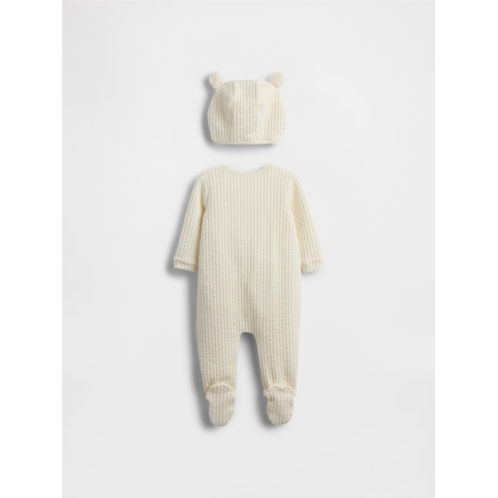 - Matching hat with adjustable chin strap and fuzzy bear ear appliques.