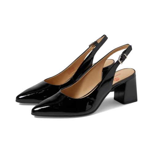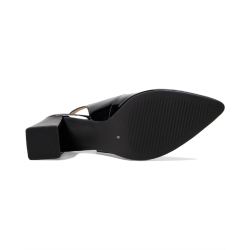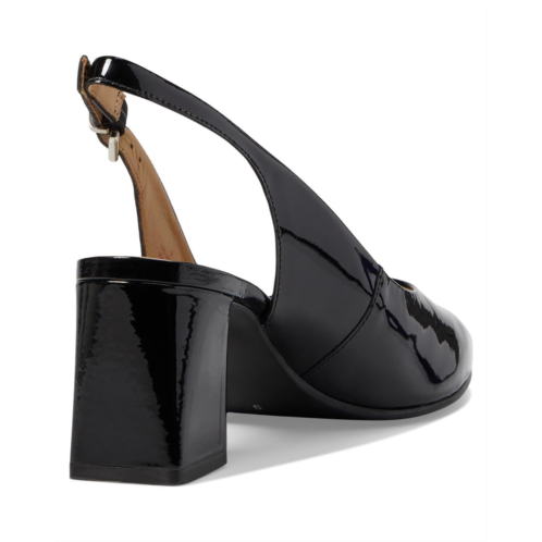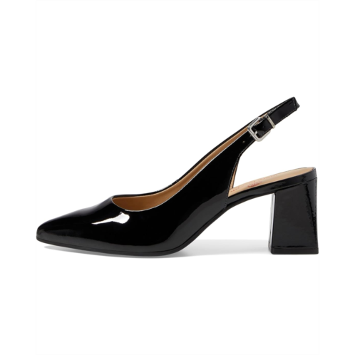 Adjustable slingback strap with buckle closure.