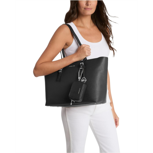 - From running errands to the busy workday, keep your essentials organized in the MICHAEL Michael Kors Quinn Large East West Top Zip Tote. Crafted from leather, this tote offers a top zipper closure with adjustable shoulder straps and three interior slip pockets.