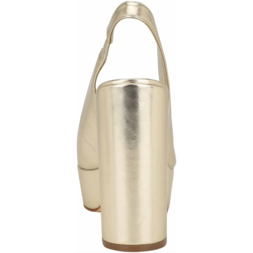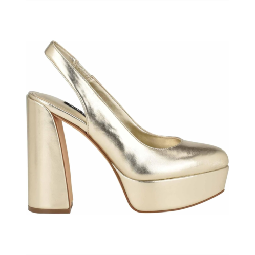 Walk confidently wearing the high class Nine West Trins. Crafted from leather upper, this pair of pumps features almond toe design, slip-on style with slingback strap, and block heel for a polished look.