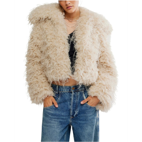 Level up your outerwear collection with this super-cool Free People Moonglow Fur jacket. This faux fur coat features an open-front design and is styled with long sleeves, a collared neckline, and a straight hem. Stay warm, cozy, and stylish wearing this open-front jacket.