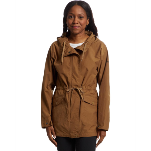 Meet the Columbia Pardon My Jacket-your go-to layer for unpredictable adventures. Crafted with water-resistant fabric, this lightweight essential keeps you dry when the skies surprise you. The drawcord-adjustable hood offers extra protection, while the back venting system ensures breathability, so you stay cool no matter the pace. A two-way centerfront zipper with a snap-button placket provides customizable coverage, and the long sleeves keep the chill at bay. Need storage? Two flap front pockets hold your must-haves securely.