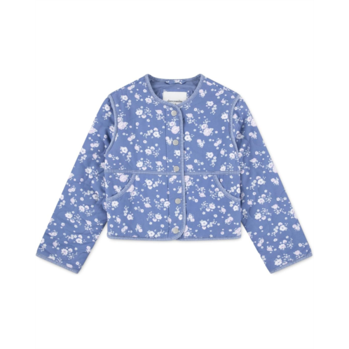 - Keep your little one cozy in the Abercrombie Kids Quilted Liner Jacket. Crafted from soft cotton viscose twill with eco-friendly recycled polyfill, it's both stylish and sustainable. Its buttoned front closure offers easy wear. The long sleeves, round neckline, and straight hem add to its style. Featuring snap buttons, two front handy pockets, and an eye-catching floral allover print, this printed jacket is perfect for transitional weather or layering.