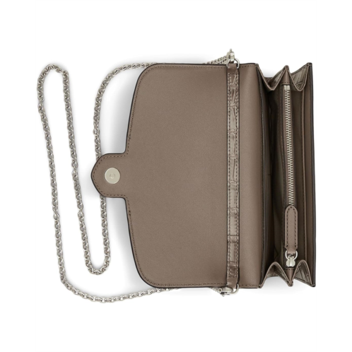 - Crafted with metallic crocodile-embossed leather and finished with a modern chain strap, the Lauren Ralph Lauren Croc-embossed Medium Adair Crossbody combines the convenience of a crossbody bag with the essential storage of a wallet thanks to its compact silhouette and array of pockets. An oval-shaped LRL logo at the front provides a signature finish. This crossbody purse is designed with a magnetic snap closure and removable brass-finished chain crossbody strap.