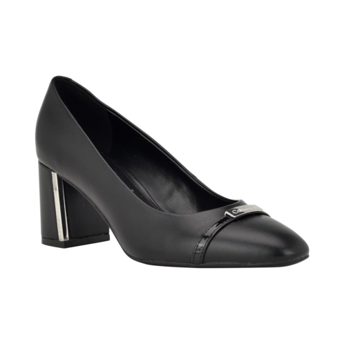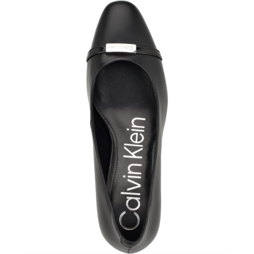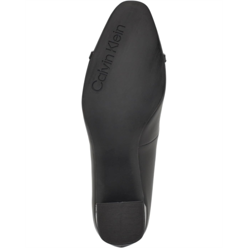 A must-add to every fashionista's collection, the Calvin Klein Unesta Dress Pumps add an instant dose of elegance to your look while ensuring that you walk with comfort and confidence. Sculpted with a timeless pointy toe and elevated by a sturdy block heel, these modern slip-on pumps feature a polyurethane upper paired with a man-made lining and a lightly padded insole. The branded metal accents on the upper and the heel add the missing shine to this footwear.