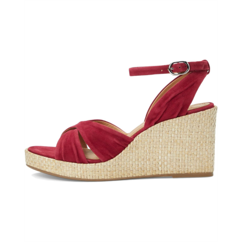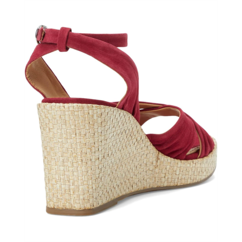 Unleash your summer soul wearing the Johnston & Murphy Marcia Cross-Band Sandal. Crafted from glove leather upper, leather lining, and insole, this pair of sandals features round toe, raffia-wrapped wedge heel, cushioned OrthoLite footbed with leather covering, and buckled closure.
