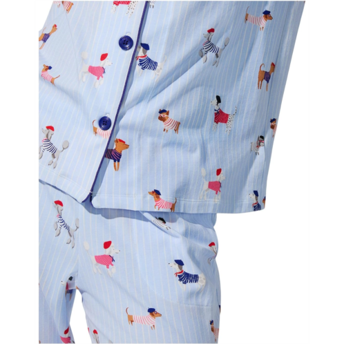 The BedHead Pajamas Long Sleeve Classic Stretch Jersey Pj Set features a classic button-down top with a notch collar and contrast piping for a polished look. The elasticated pull-on pants offer a relaxed fit, complete with side pockets for added ease.