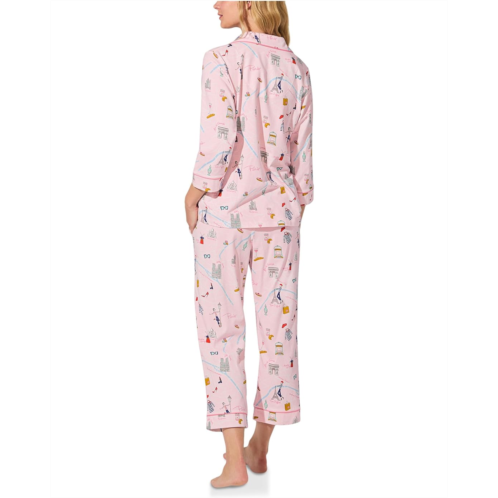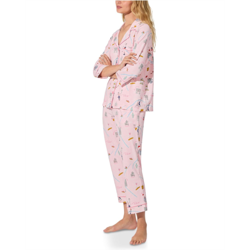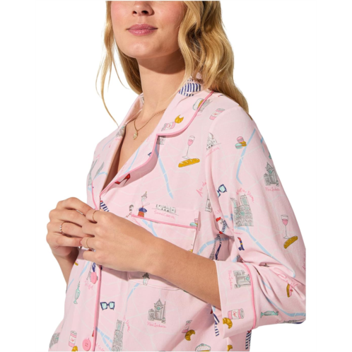 Elevate your loungewear look in the BedHead Pajamas 3/4 Sleeve Classic Stretch Jersey Cropped Pj Set. Featuring a notch lapel with a front button closure, three-quarter sleeves, chest patch pocket, contrast piping, and a straight hemline.