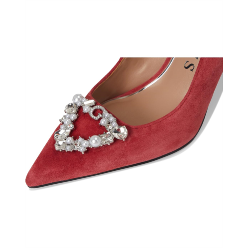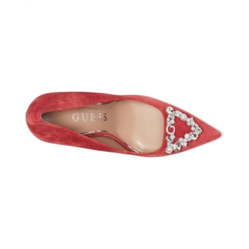 The GUESS Prinsen pump is anything but ordinary. The beautiful silhouette, rhinestone embellished ornament and stiletto heel features a cushioned leather insole for all-day support and a synthetic rubber flex outsole that moves with you.