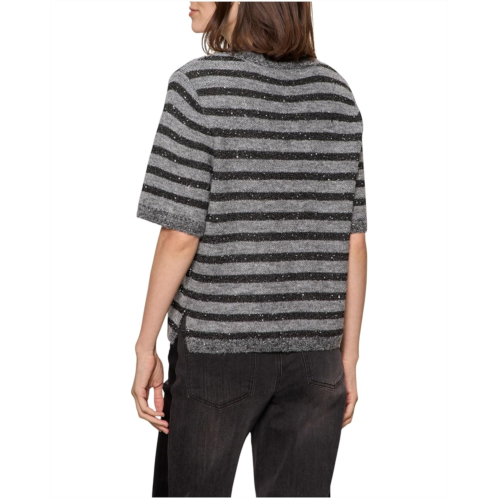 - Your casual style game just got an update with the Sanctuary Short Sleeve Shine Sweater Tee. The pull-on style tee features a crew neck, short sleeves, striped pattern, sequin details allover, and a straight hem.
