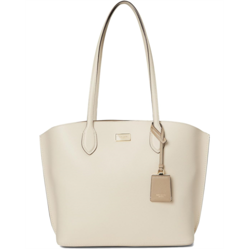 - Meet the Kate Spade New York Suite Tote Bag, where timeless sophistication meets modern functionality. Crafted from luxurious crossgrain leather, this tote exudes understated style while being durable enough for your daily adventures. Inside, an intuitive design includes a slip pocket, a zippered compartment, and ample space to fit your essentials-whether it's your iPhone, iPad, or both! The magnetic snap closure ensures security and quick access, while the signature pinmount logo adds a touch of iconic charm.