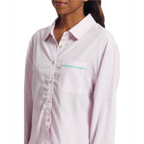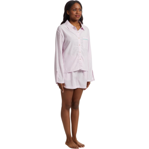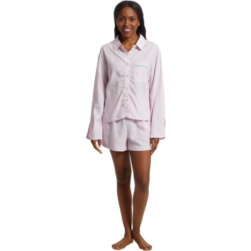 Your night time routine just gets luxurious with the Honeydew Intimates Awaken Long Sleeve Shortie Set. The lightweight shirt features a button-front closure, a collared neckline, long sleeves with side vent details at the wrist, and a patch pocket on the left chest with zig-zag trim. The pull-on style boxer-inspired shorts feature an elasticated waist and a short-length silhouette. The allover striped pattern on the shirt and shorts looks pretty and casual.