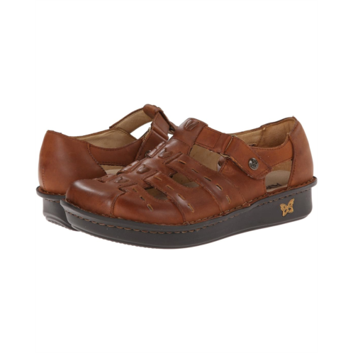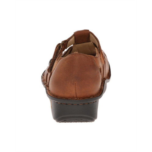 - Stylish embossed or burnished leather has a woven leather vamp for excellent ventilation and style.