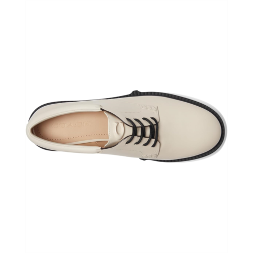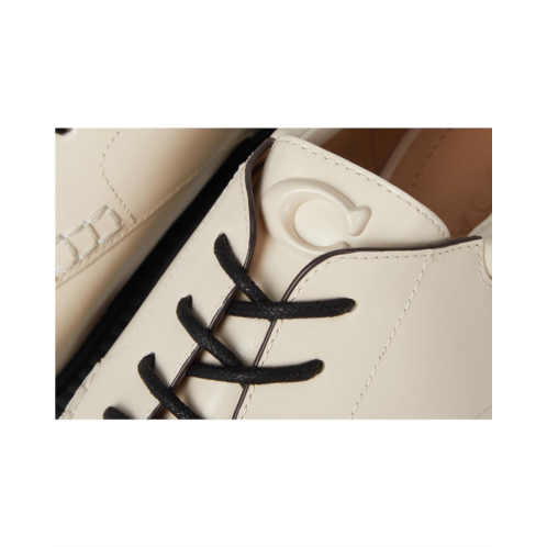 Maintain your polished style effortlessly in the COACH Lyla Leather Derby shoes. These lace-up closure shoes feature a round toe silhouette, smooth leather upper, man-made leather lining and insole, and a lightly padded collar for added support.