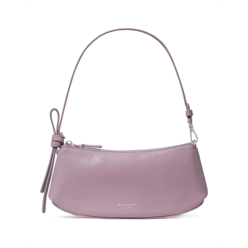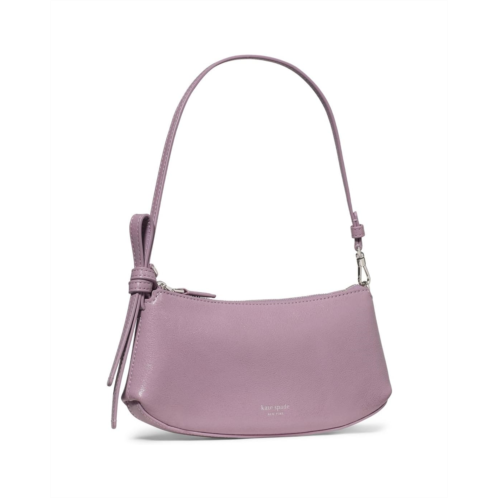 - The Kate Spade New York Loop Glazed Leather Pochette is a softly structured shoulder bag with a signature knotted strap detail, and minimalist elegance. Its curved silhouette is accented by a top carry handle. The bag includes a zippered top closure, polyester lining, and an interior slip wall pocket for essentials.