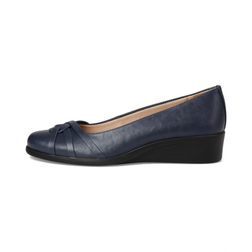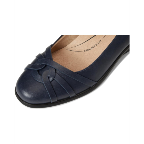 Step into comfort and style wearing the LifeStride Jorie Skimmers! These sleek wedge heels are crafted with a faux leather upper, lining, and insole for a polished look, while the round toe and interwoven strap detail offer a touch of sophistication. Designed with standout arch support and a contoured cushioned insole, these skimmers ensure all-day comfort, whether you're at work or running errands. The slip-on fit and PU outsole provide flexibility and traction for stability, making them perfect for any occasion. Featuring Soft System comfort technology and linings made from partially recycled materials, they blend style and sustainability seamlessly.