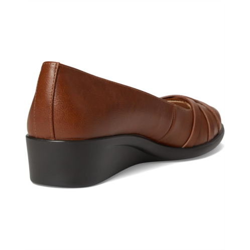 Step into comfort and style wearing the LifeStride Jorie Skimmers! These sleek wedge heels are crafted with a faux leather upper, lining, and insole for a polished look, while the round toe and interwoven strap detail offer a touch of sophistication. Designed with standout arch support and a contoured cushioned insole, these skimmers ensure all-day comfort, whether you're at work or running errands. The slip-on fit and PU outsole provide flexibility and traction for stability, making them perfect for any occasion. Featuring Soft System comfort technology and linings made from partially recycled materials, they blend style and sustainability seamlessly.