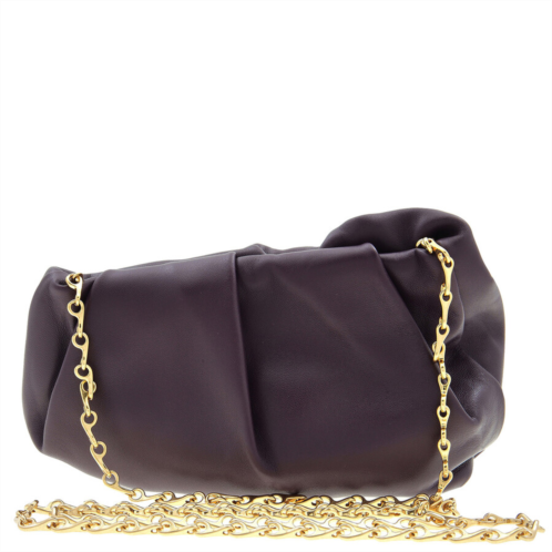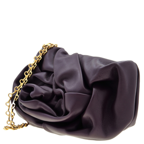Burberry Ladies Clutch. SKU: 8079188. Color: Prune. Burberry Rose Chain Clutch Bag. The bag's lightweight design is unlined and features a gathered shape inspired by a rose motif. The 'B' chain strap allows the design to transition from a clutch to a shoulder bag. 100% Lambskin. Made in Italy.