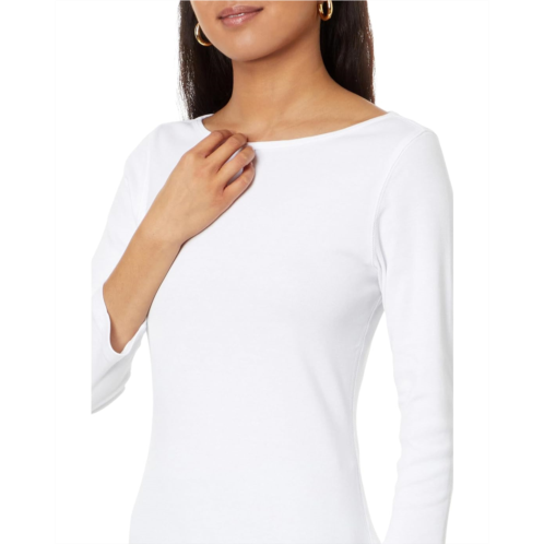 [US] Womens Lilla P 1x1 Rib 3/4 Sleeve Boatneck Top