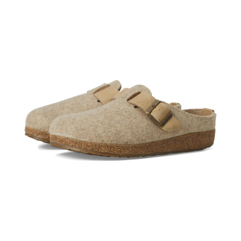 - The Haflinger Buckle wool felt clogs offer an anatomically correct cork footbed with an arch support, a wool felt sock liner and a lightweight rubber traction sole.