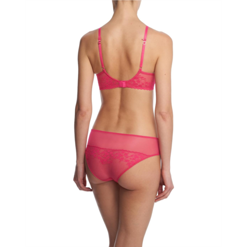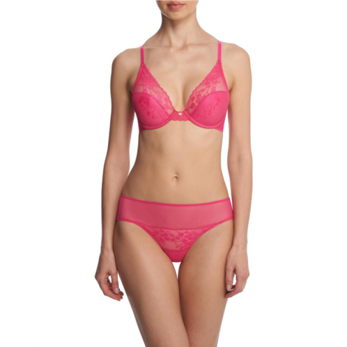 - Contour/t-shirt underwire cup is lightly padded with a lace overlay that extends over the cup top.
