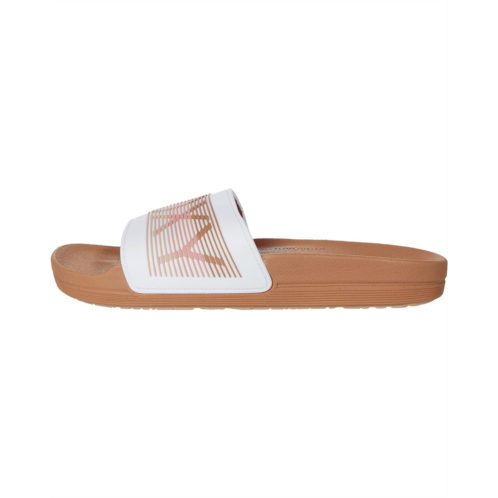 - Have your feet warm weather ready with the Roxy Slippy LX. These slides are crafted with a wide fixed strap with logo name and multicolored stripe detail, making them perfect for the beach or pool.