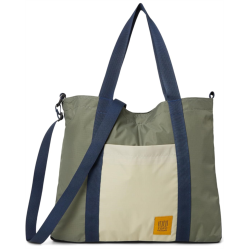 - Carry essentials effortlessly in the Topo Designs Mountain Essential Tote. It is crafted with 200D recycled nylon lightweight ripstop, 400D recycled nylon, and PFC-free DWR fabric. The small version, with an internal top entry pocket, key hook, and external top entry pocket allows hassle-free storage. The two shoulder straps and removable long shoulder strap allow easy carrying on the go, while the loop & toggle top closure keeps things stored securely.