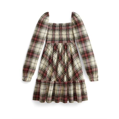 - This cotton jersey dress by Polo Ralph Lauren Kids unites a festive plaid print, ruffle trim, and a smocked bodice. At the hem, our embroidered Pony adds a signature Polo finish. Designed in a fit-and-flare silhouette, it features a ruffled square neckline, long sleeves with elasticized cuffs, and a smocked bodice for a comfortable fit. A ruffle-trimmed hem completes its playful, festive look.