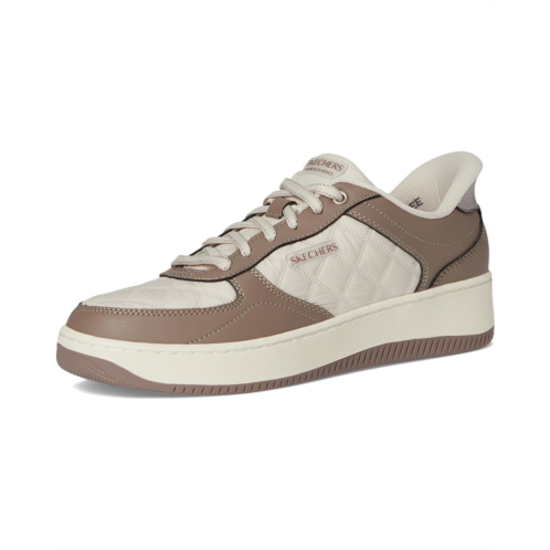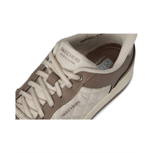 Casual modern style and effortless comfort combine in SKECHERS Sport Court 2.0-Daily Journey Hands-Free Sneakers. Designed with our exclusive Heel Pillow, this a sleek court silhouette features a lace-up duraleather upper and a cushioned Skechers Air-Cooled Memory Foam insole.