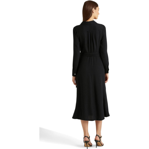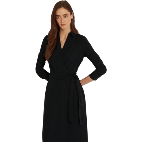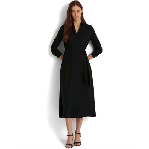 - The LAUREN Ralph Lauren Long Sleeve Day Dress features a faux-wrap bodice, a belted waist, and side on-seam pockets add to the casual allure of this midi dress, while a point collar and buttoned barrel cuffs afford sophistication. An airy georgette fabrication creates ease of movement in an A-line silhouette.