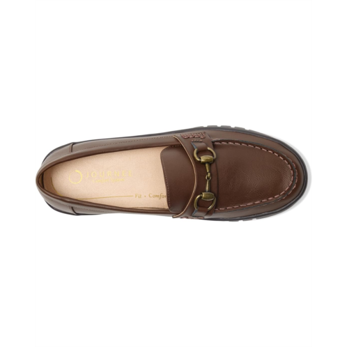 - The Journee Collection Kaya bit loafer combines timeless sophistication with modern comfort, featuring sleek faux leather and detailed upper stitching for a polished look. Its slip-on design and classic round toe make it effortlessly stylish, while the hardware detail adds a refined touch. With a 4mm Journee Comfort System insole, this loafer ensures a cushioned step, perfect for both professional and casual settings.