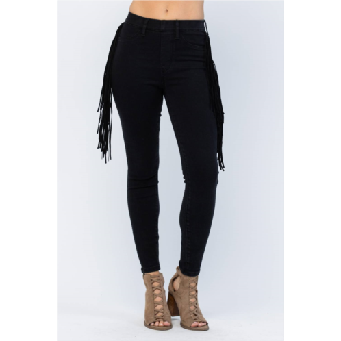 [US] Judy Blue high-rise side fringe black skinny jegging jeans