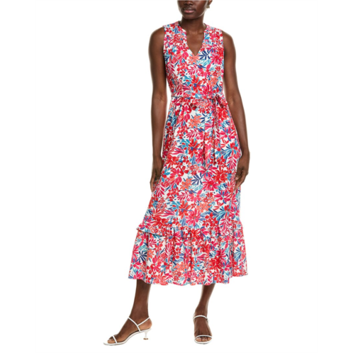 [US] Jones New York smocked yoke tiered linen-blend maxi dress