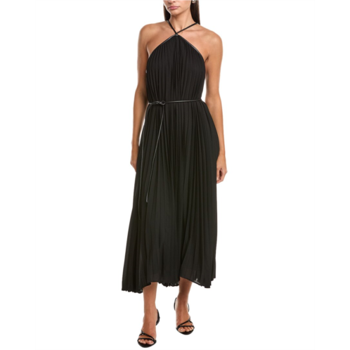 Elevate your wardrobe with the Proenza Schouler White Label Celeste Midi Dress. This stunning black dress features an accordion pleated design and a waist tie for a flattering silhouette. With a right side seam zipper and hook-and-eye closure, this dress is both stylish and functional. Made from 100% polyester, this dress is both luxurious and easy to care forjust dry clean only. Imported and approximately 52 inches from shoulder to hem, this dress is perfect for any special occasion. Model is 5'10 and wearing a size 4. Please note that measurements may vary slightly by size.