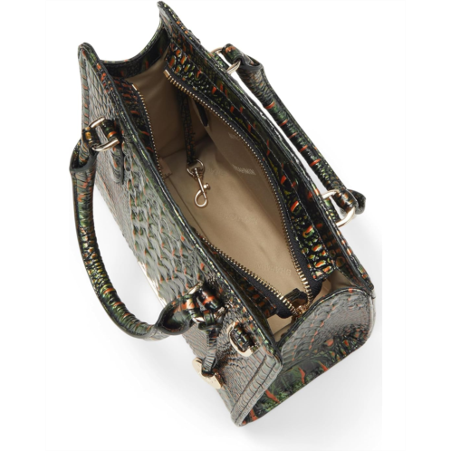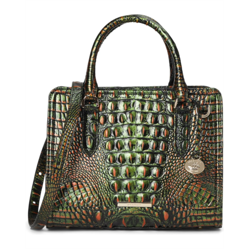 - A modern twist on a must-have silhouette, Brahmin Cami is a medium-sized satchel for everyday style. The trendy square shape and sleek trapunto details make this an effortlessly chic way to upgrade your daily style. The zippered top closure keeps your essentials secure, and rolled handles allow you to carry with comfort. The back slide in pocket, zippered interior pocket, and key clip give you effortless organization. Bottom feet protect the handbag from any scuffing.