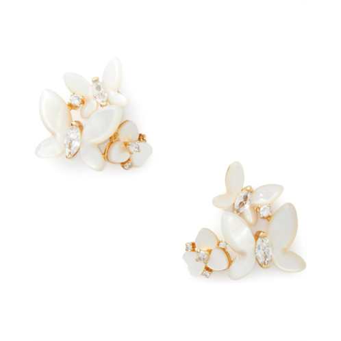 - Lend a sophisticated and graceful finish to your dressy or casual look by accessorizing with the Kate Spade New York Cluster Studs. Set in a goldtone plated brass, the earrings are designed with lots of thoughtful details like the eye-catching mother-of-pearl butterfly-shaped structures combined with the sparkling cubic zirconia stone accents.