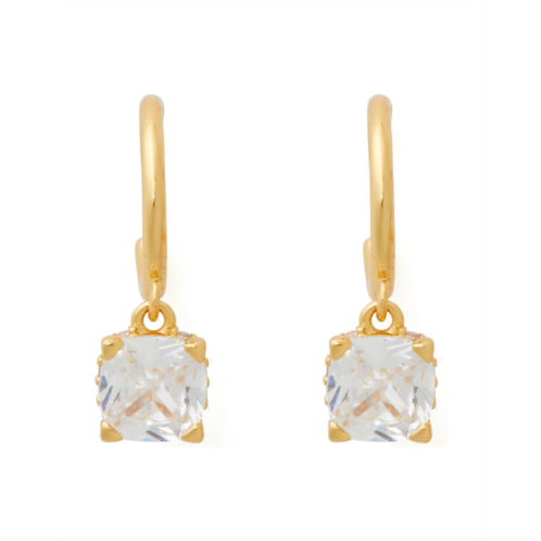 - Accessorizing your look is quick and easy with the Kate Spade New York 6mm Square Huggies that comes in an elegant square-cut design with sparkling glass pearl cubic zirconia stone and a drop style. The clip-on closure allows easy on or off.