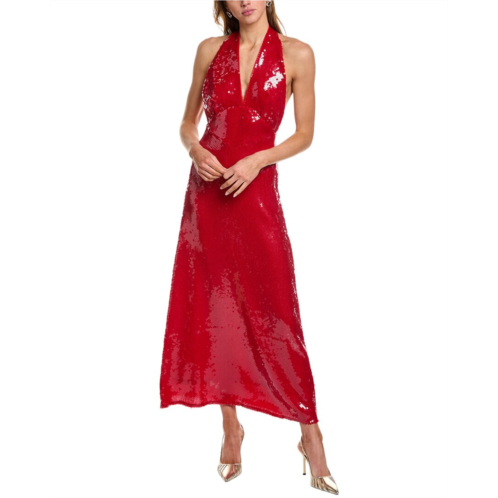 Add a touch of glamour to your evening wardrobe with the Bardot Freja Sequin Midi Dress in Deep Red. This stunning dress features a plunging halter neck, open back, and all-over sequin design for a show-stopping look. The center back zipper closure makes it easy to slip on, while the lining ensures a comfortable fit. Hand wash recommended. Imported. Perfect for special occasions and nights out, this dress is approximately 57 inches from shoulder to hem and is worn by a model who is 5'9' and wearing a size US 4/ UK 8. Please note that measurements may vary slightly by size. Made from 92% polyester and 8% elastane, with a lining of 95% polyester and 5% elastane. Elevate your style with the Bardot Freja Sequin Midi Dress.