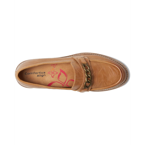 - Step up in style and comfort by wearing the Comfortiva Linz loafers. the slip-on style shoes have mocassin with chain detailing at the top. The leather upper loafers have cap toes and slight block heels for a classy look. The microfiber lining and footbed add comfort for all-day wear.
